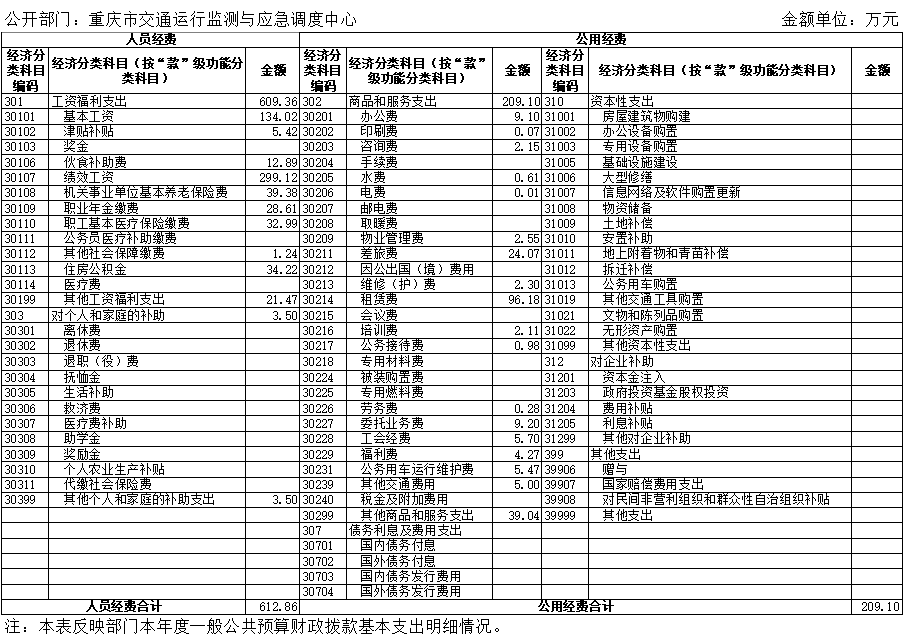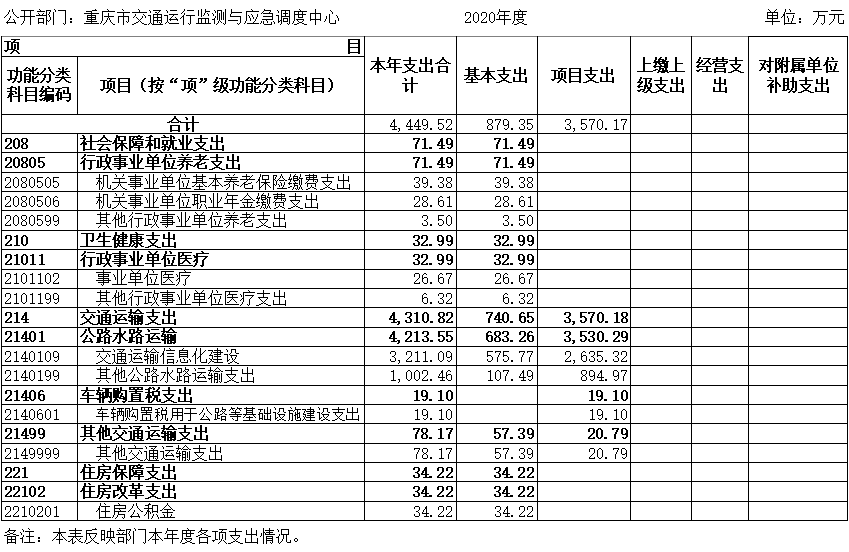 重庆市交通运行监测与应急调度中心2020年度部门决算情况说明
