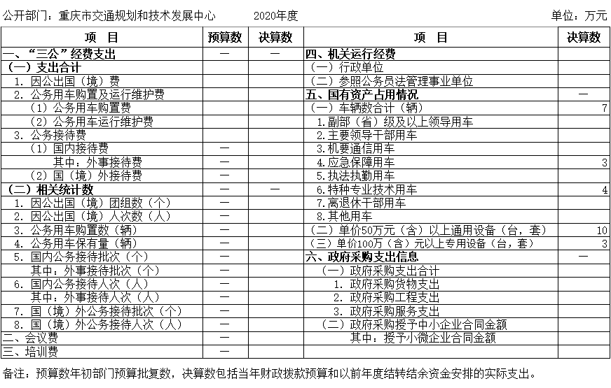 重庆市交通规划和技术发展中心2020年度部门决算情况说明
