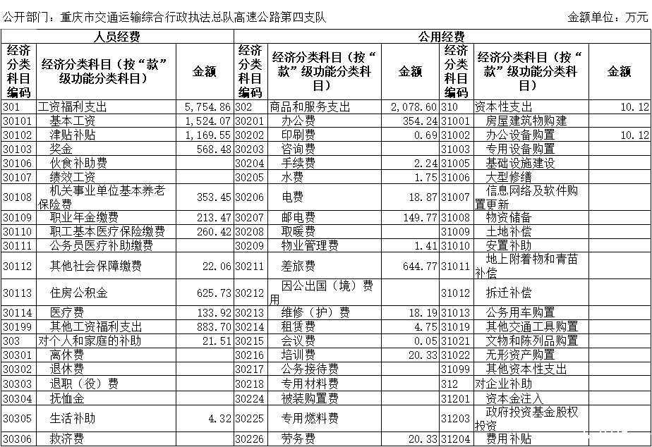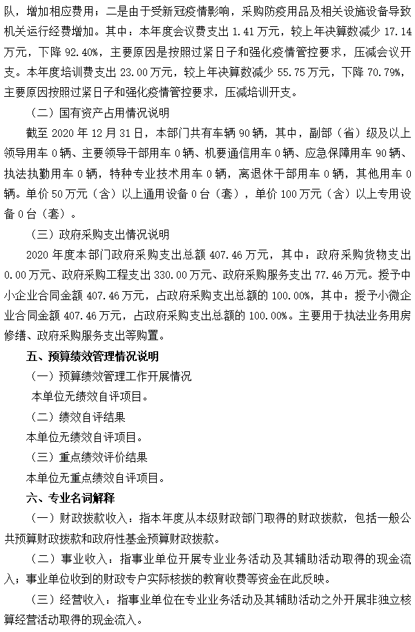 重庆市交通运输综合行政执法总队高速公路第四支队2020年度部门决算情况说明