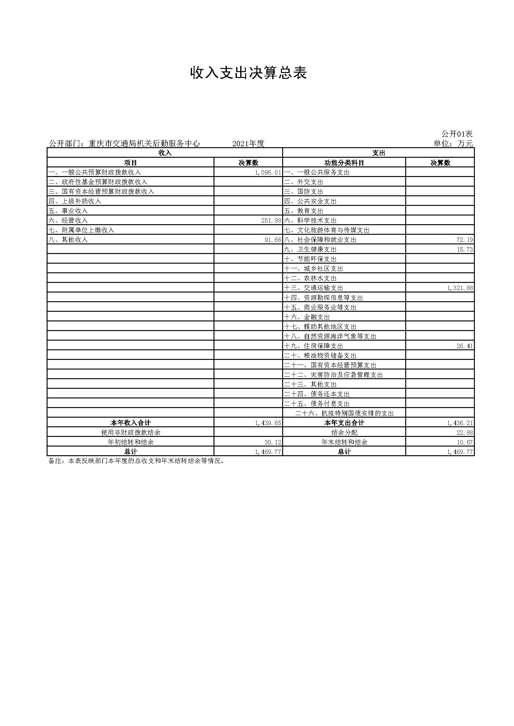 重庆市交通局机关后勤服务中心2021年度部门决算情况说明