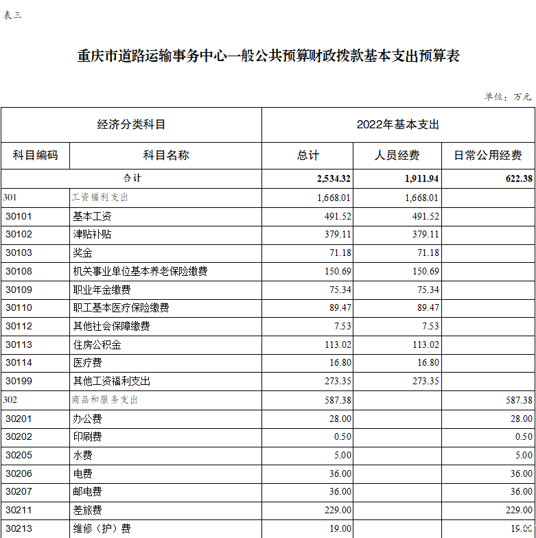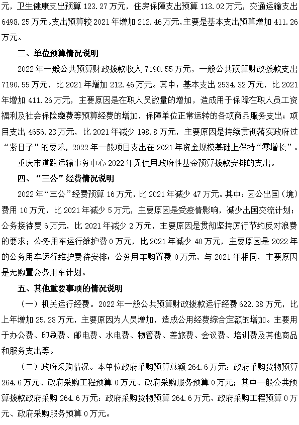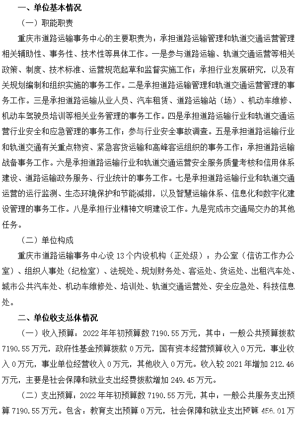 重庆市道路运输事务中心2022年单位预算情况说明