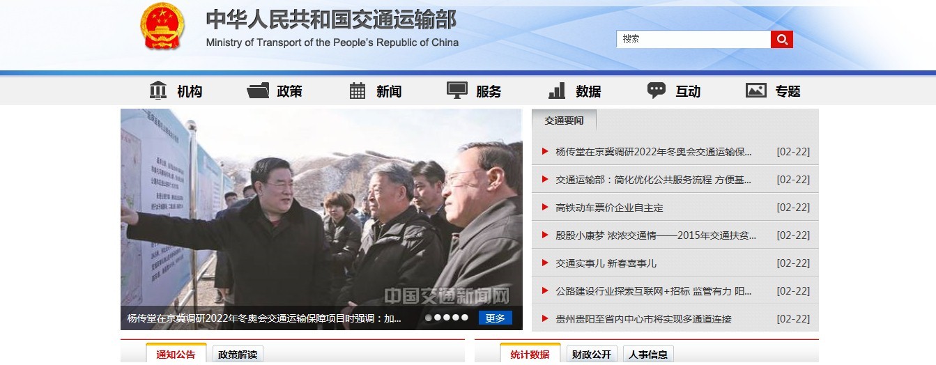 1.2015年我部累计在中国政府网“部长之声”专栏发布17期30例部领导重要讲话,发布政策解读信息8条。通过部政府网站对《航道法》《汽车维修技术信息公开实施管理办法》《关于加强交通运输行业信用体系建设的若干意见》《hth华体育app关于全面深化交通运输改革的意见》《2015年“道路客运安全年”活动方案》等社会关切热点以及需要公众广泛知晓的相关法律、法规、规章、规定、意见等进行了解读。举办了40期在线访谈,通过部政府网站组织在线访谈,由部机关及交通运输系统单位相关负责同志就交通运输重点工作开展情况、部政府网站改版情况等向网民做介绍,并与网民在线互动交流。