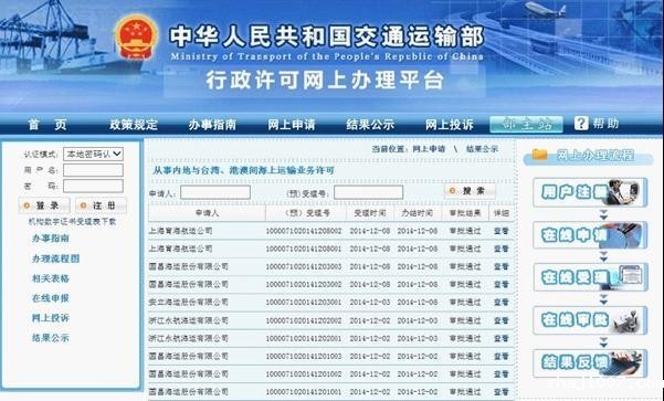 1.进一步推进行政权力运行信息公开。一是建立管理权力清单制度并对外公开。二是建立行政审批事项动态公开机制。我部通过政府网站和中国交通报等行业媒体,对分批取消下放的35项行政审批事项主动及时向社会公告,并通过召开新闻发布会的形式向媒体公布。三是积极推行行政审批项目网上办理。已上线运行的“hth华体育app行政许可网上办理平台”,对网上申请的行政许可进行受理、审批和审批结果在线公示,现已有16项行政审批事项在许可平台办理。