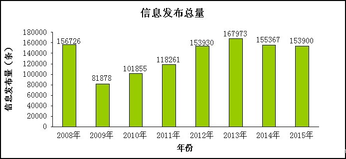 经统计,2008年至2015年,hth华体育app政府网站发布各类信息总计109.14万条。社会公众对hth华体育app政府网站页面浏览量达到26亿次。